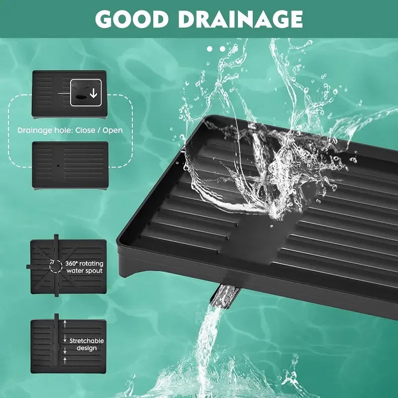 Perfect for modern homes, this large-capacity rack holds plates, bowls, cups, and utensils effortlessly while keeping your countertop spotless. Its 360° rotating drainage tube ensures water flows directly into the sink — no mess, no puddles.