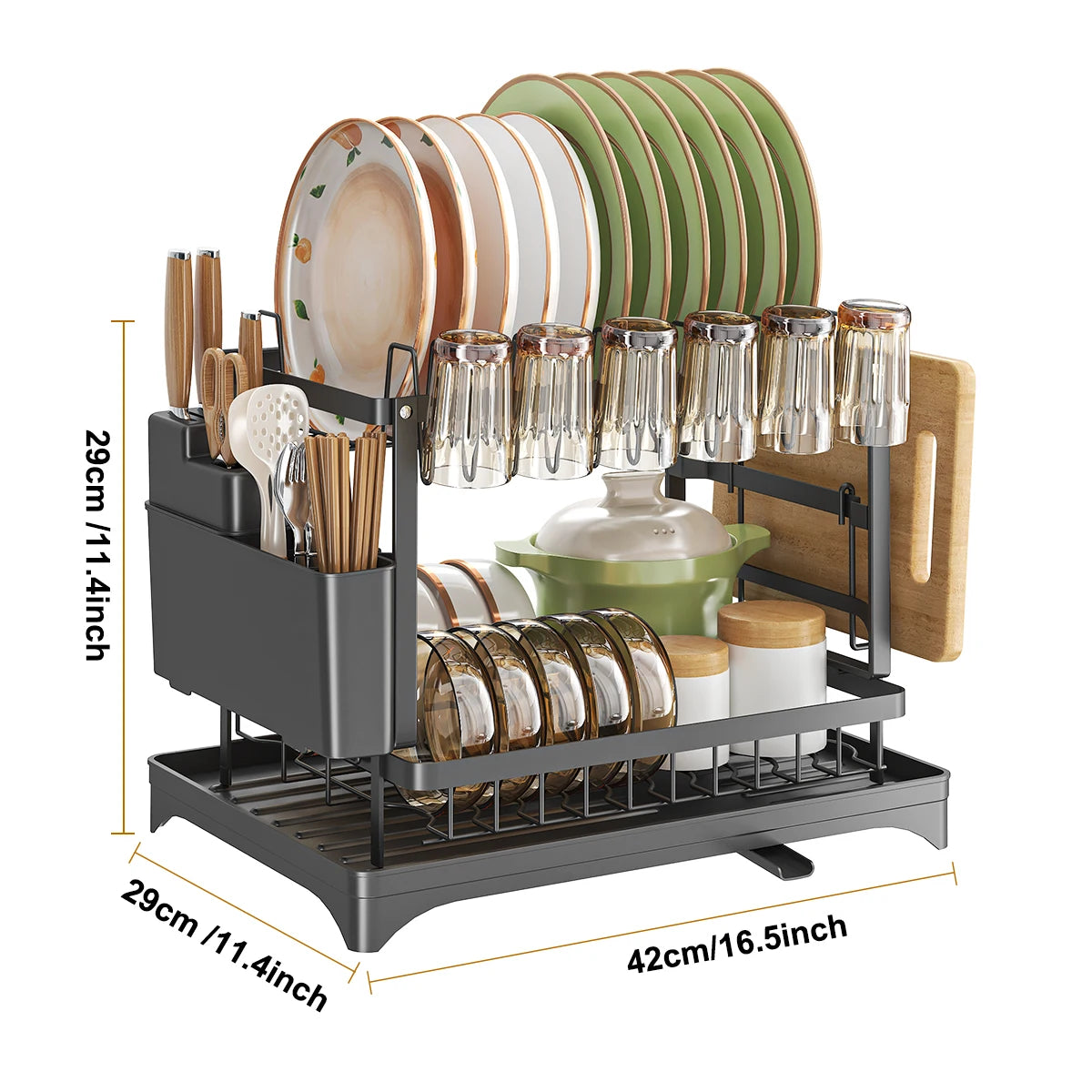 🍽️ 2-Tier Dish Drying Rack with Utensil Holder – Smart Design, Maximum Space