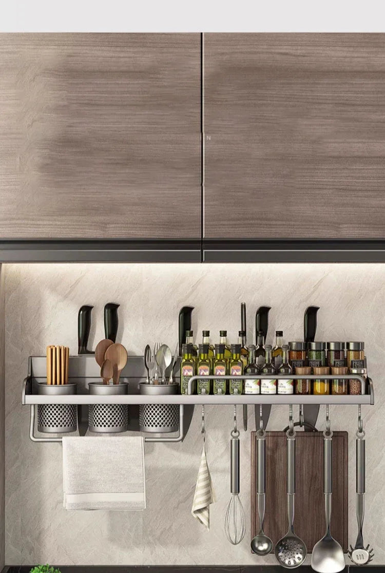 Keep your kitchen beautifully organized and clutter-free with the Multifunctional Kitchen Storage Rack – the perfect blend of style and practicality for modern homes. Designed for busy women who love a tidy, efficient space, this wall-mounted rack offers a sleek way to store your cutting boards, spice jars, utensils, and kitchen tools all in one place.